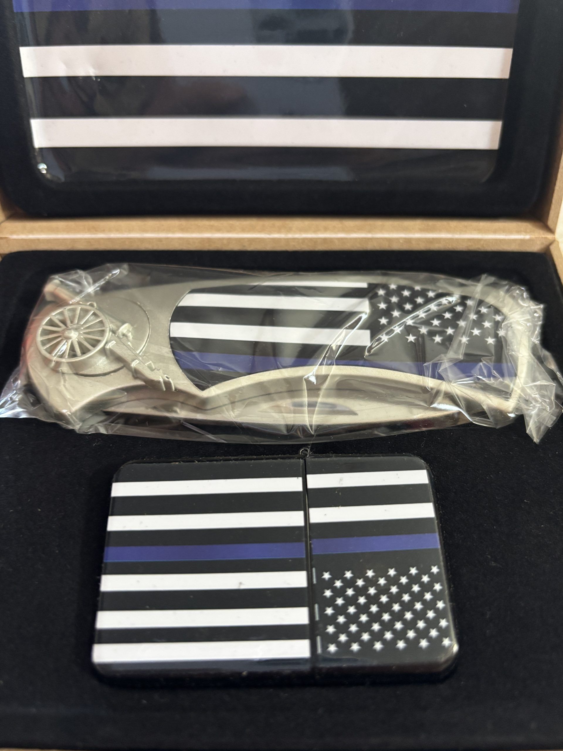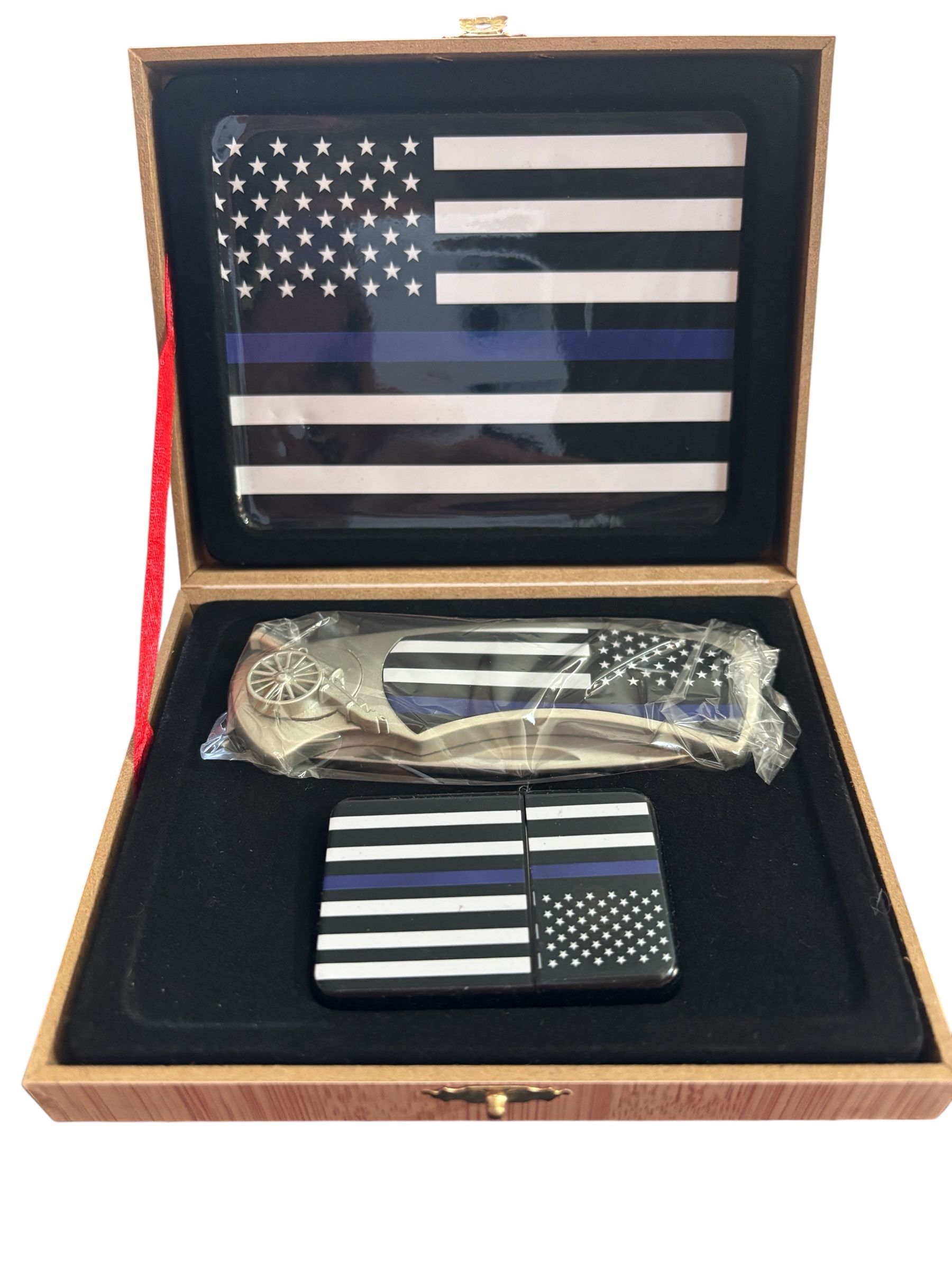 Coffret comprenant un Briquet Tempête et un couteau – Police Blue Line Tribute
