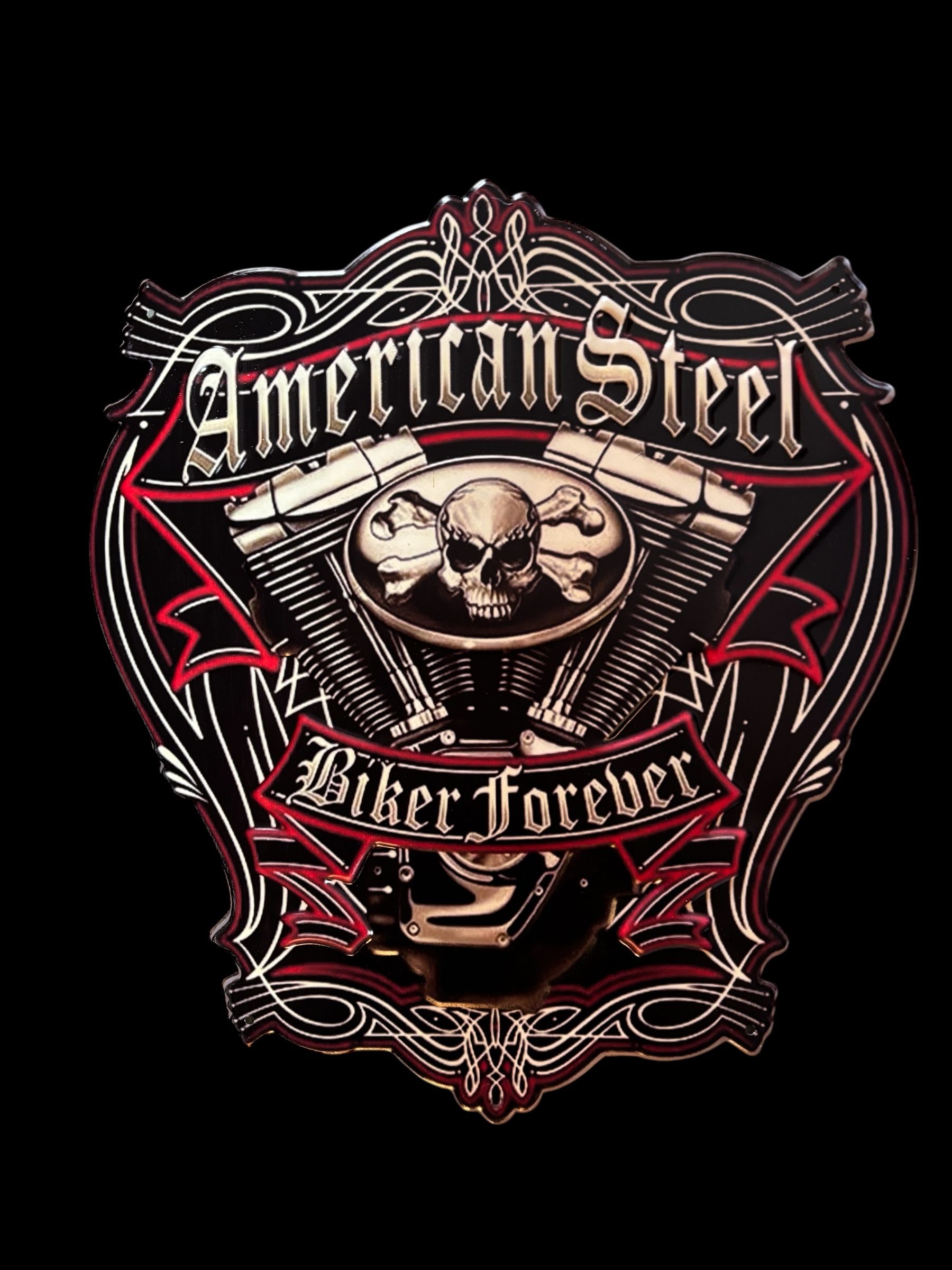 Plaque en métal murale vintage AMERICAN STEEL – BIKER FOREVER