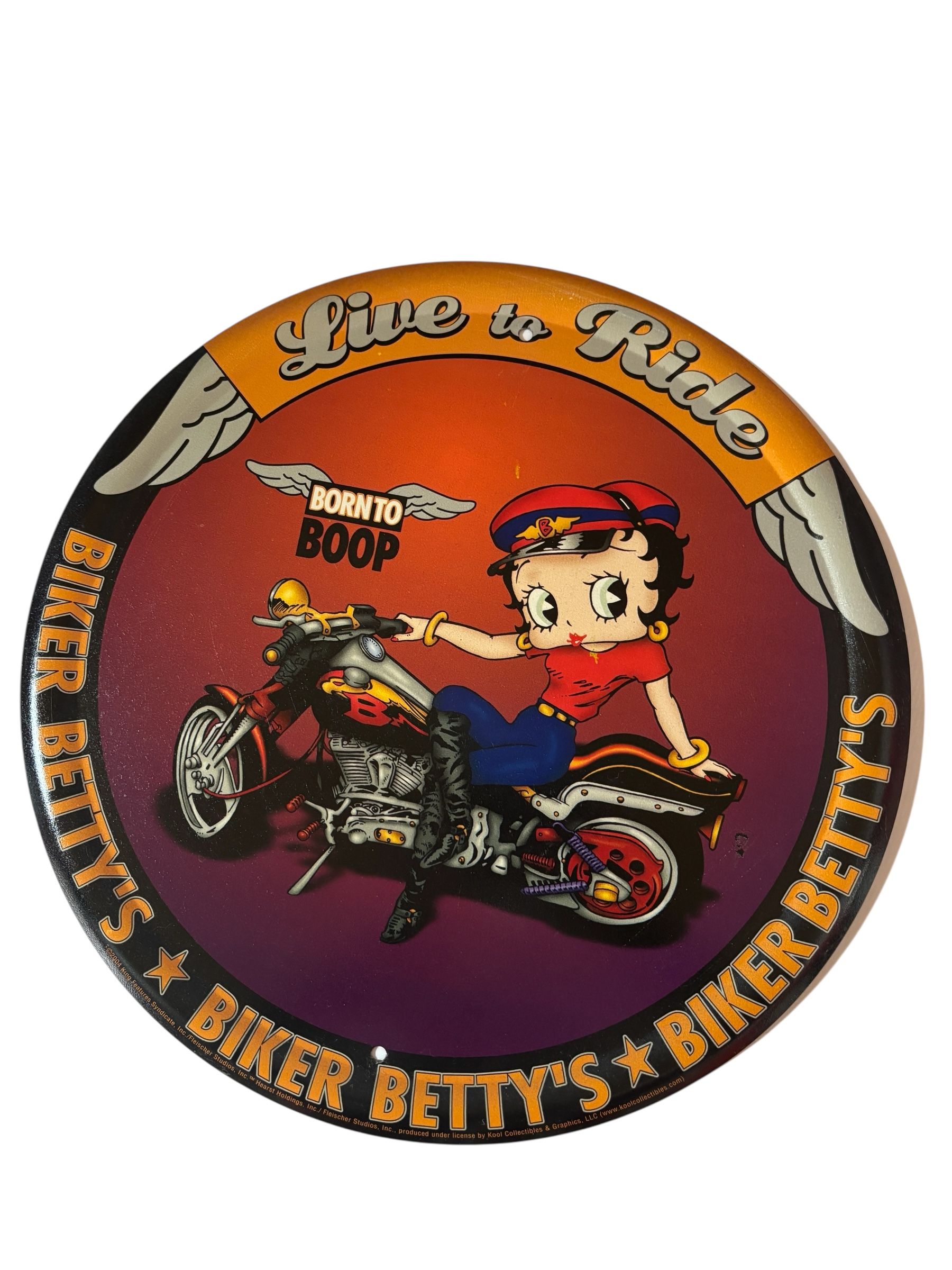 Plaque ronde en métal BETTY BOOP – Live to Ride BIKER