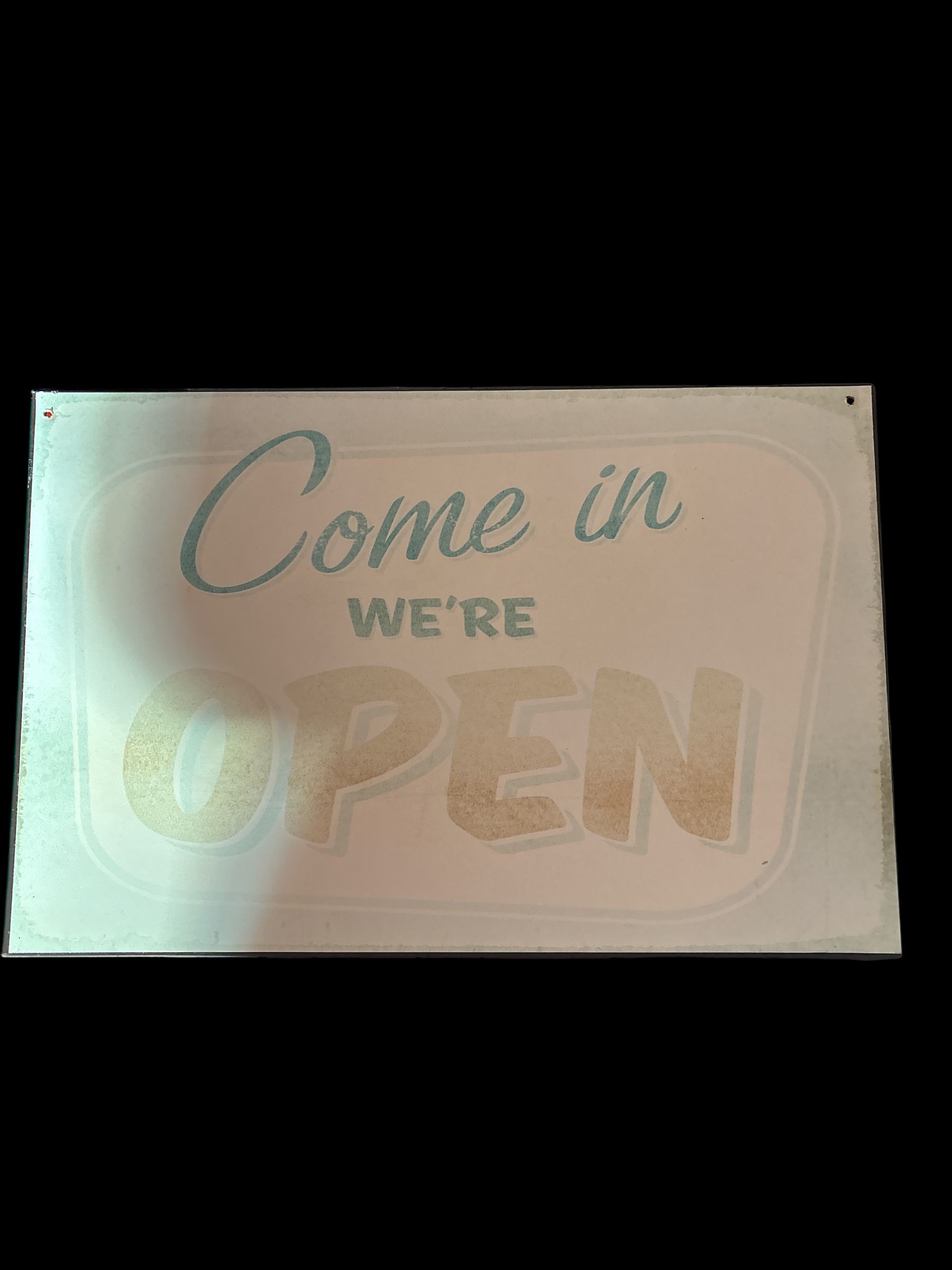 Plaque COME IN WE’RE OPEN en métal