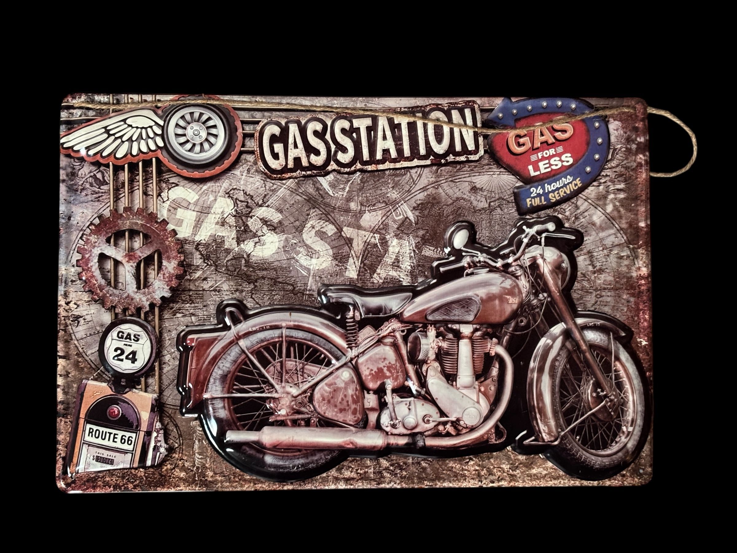 Plaque GAS STATION – GAS FOR LESS – Déco MOTO