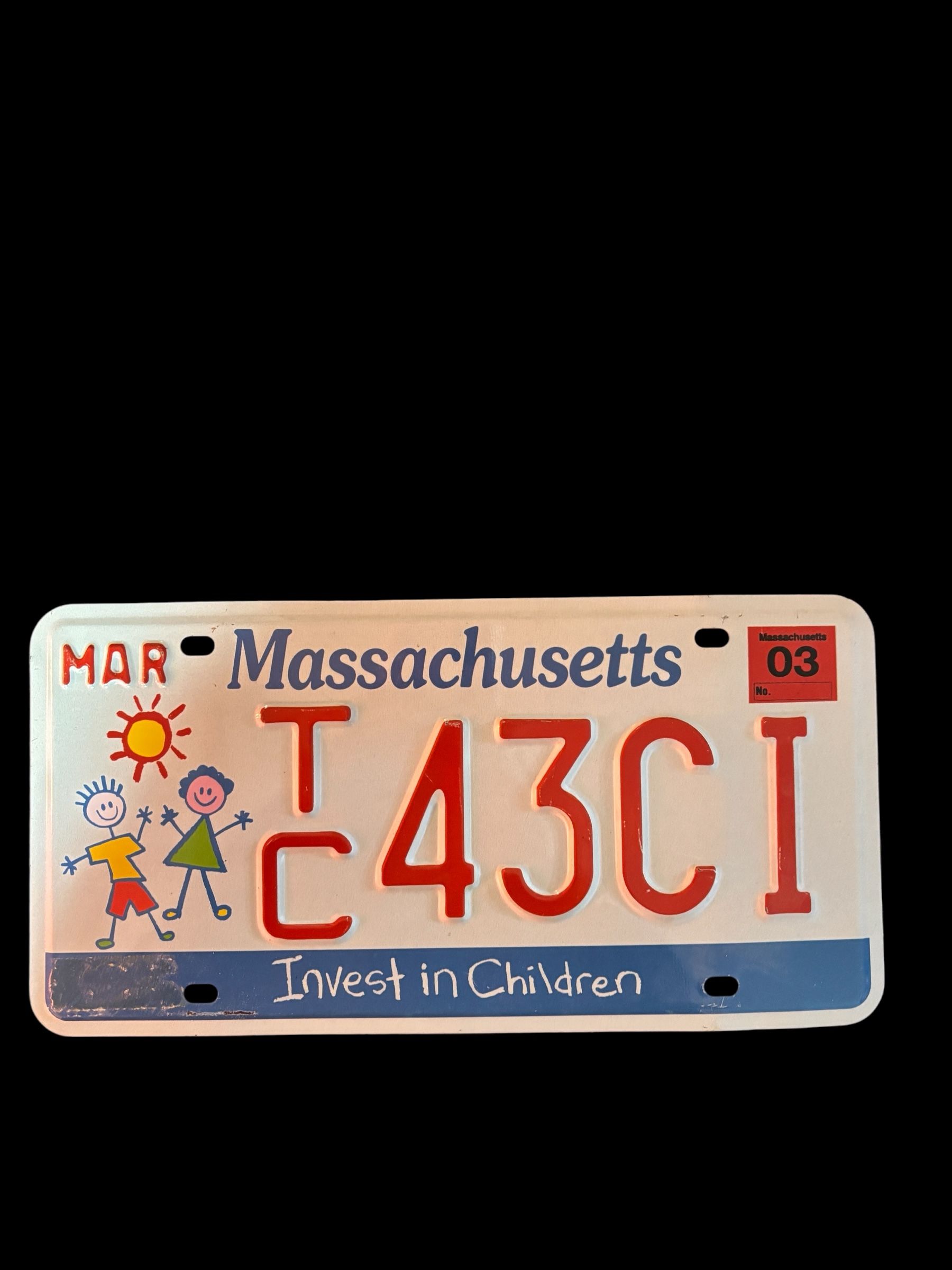 Plaque décoration immatriculation MASSACHUSETTS TC 43CI – INVEST IN CHILDREN