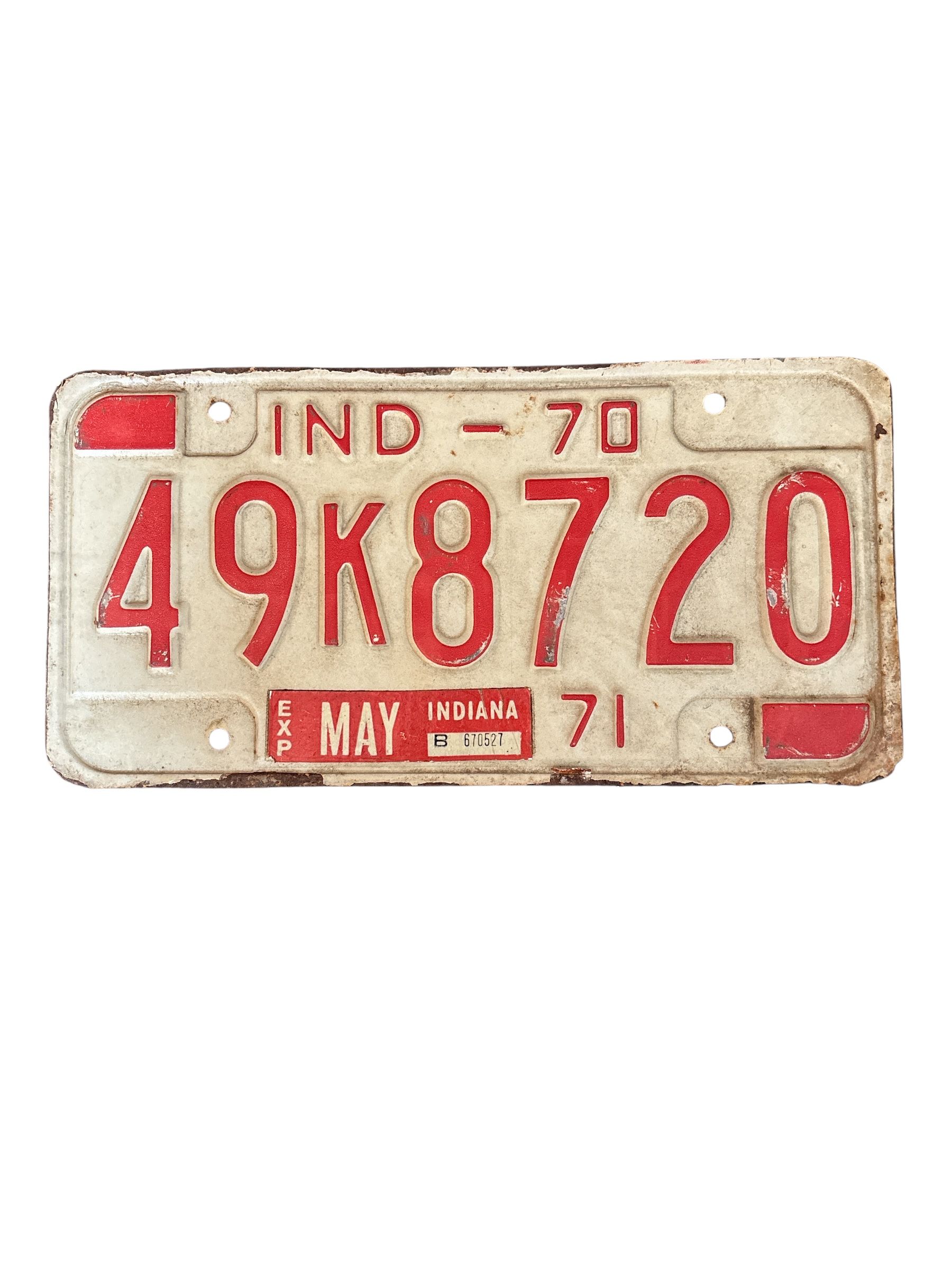 Plaque Voiture Immatriculation INDIANA 49K8720 de 1971