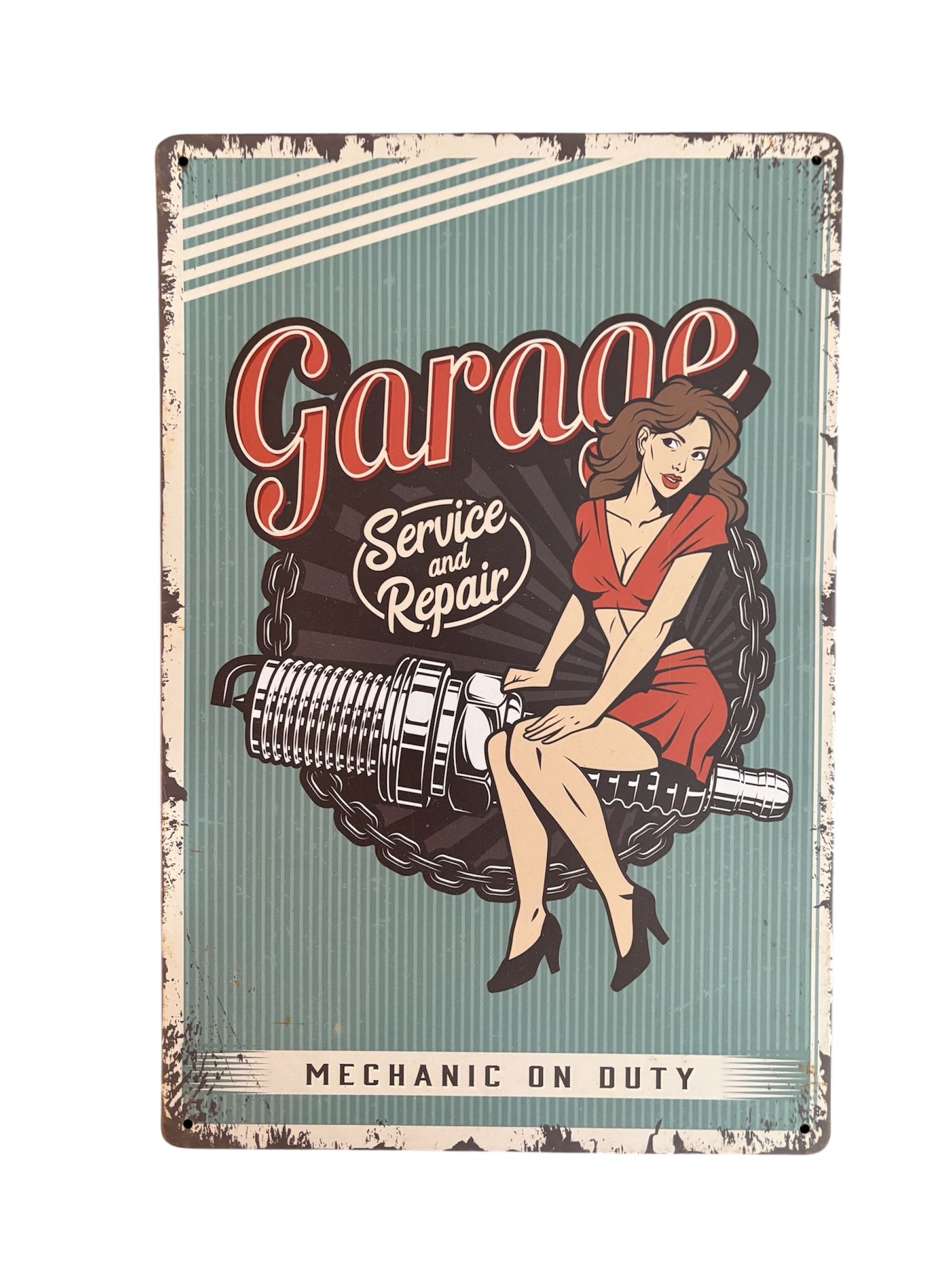 Plaque métallique GARAGE SERVICE AND REPAIR – MECHANIC ON DUTY