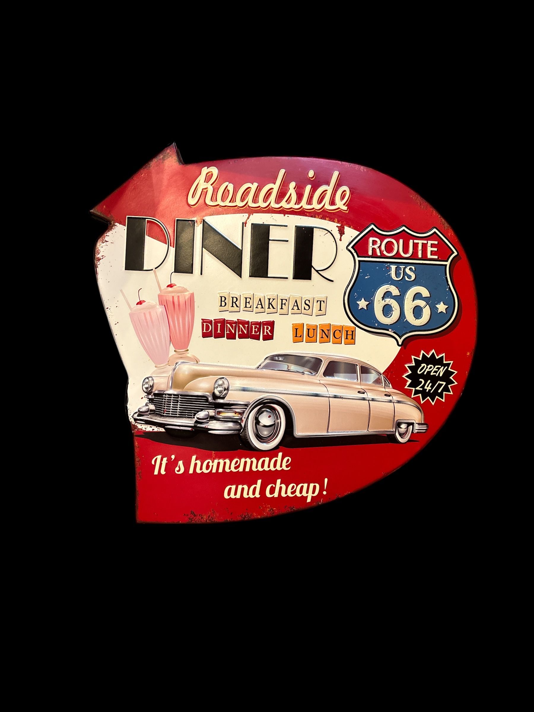 Plaque en métal ROADSIDE DINER ROUTE 66
