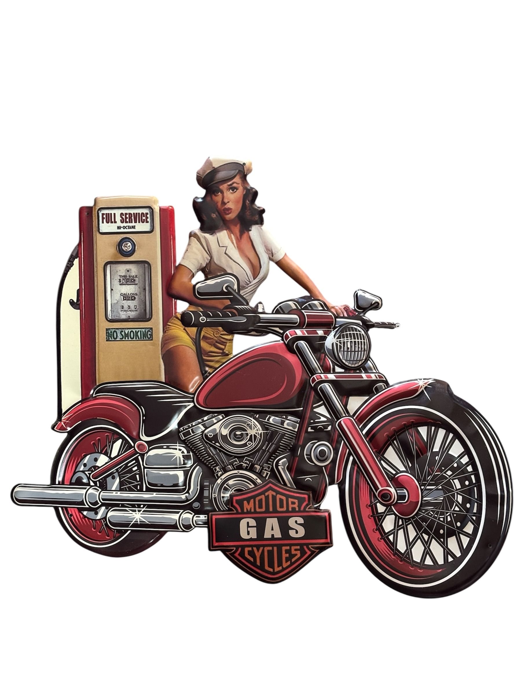Plaque métal STATION ESSENCE – MOTO – PIN UP – MOTOR GAS CYCLES