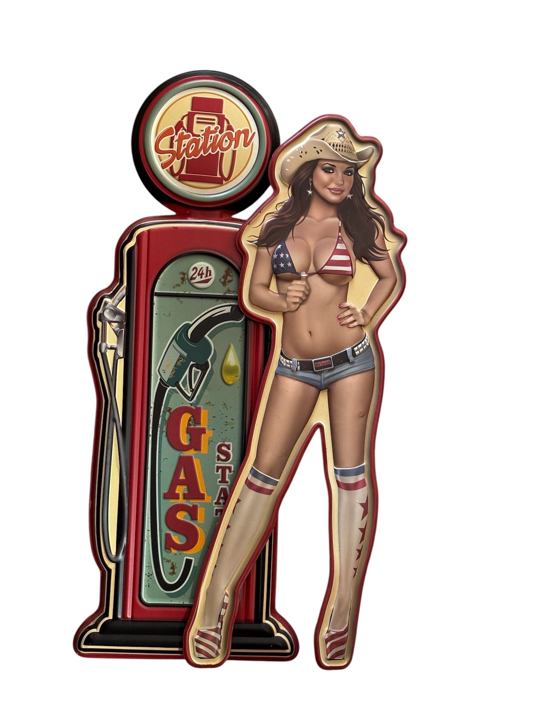 Plaque métal Station PIN UP – Pompe à essence GAS