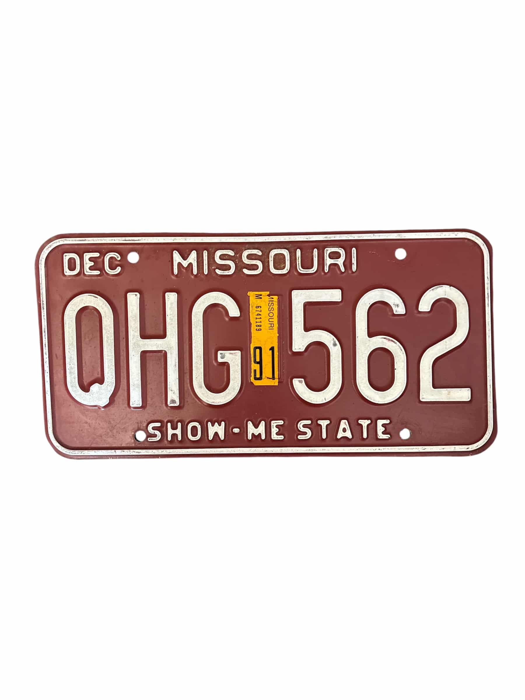 Plaque Voiture Immatriculation MISSOURI QHG 562 de 1991