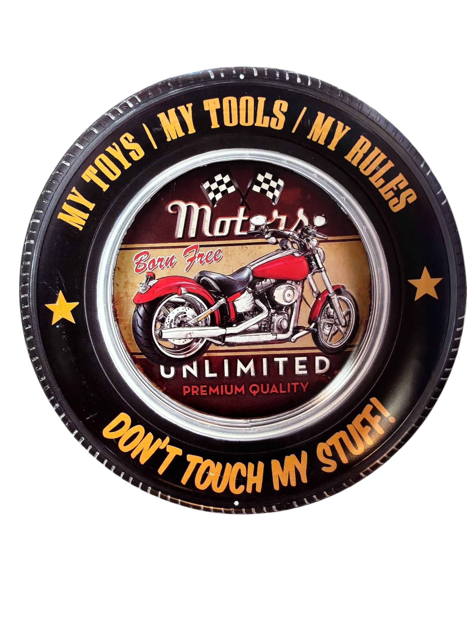 Plaque en métal MOTORS – MY TOYS / MY TOOLS / MY RULES