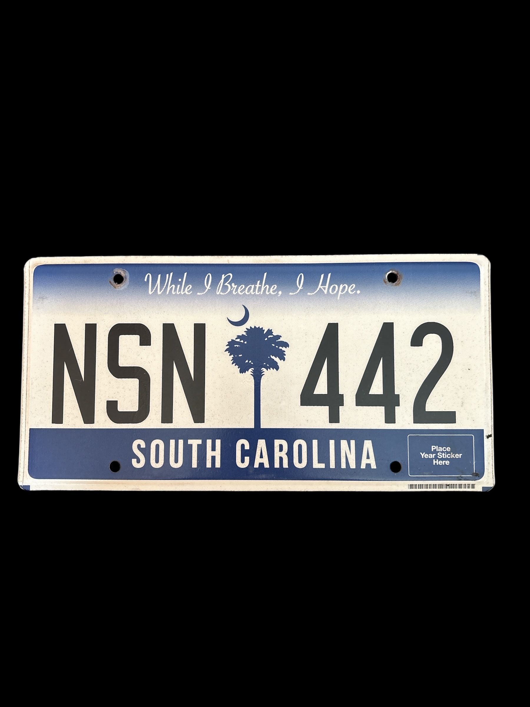 Plaque Voiture Immatriculation SOUTH CAROLINA NSN 442