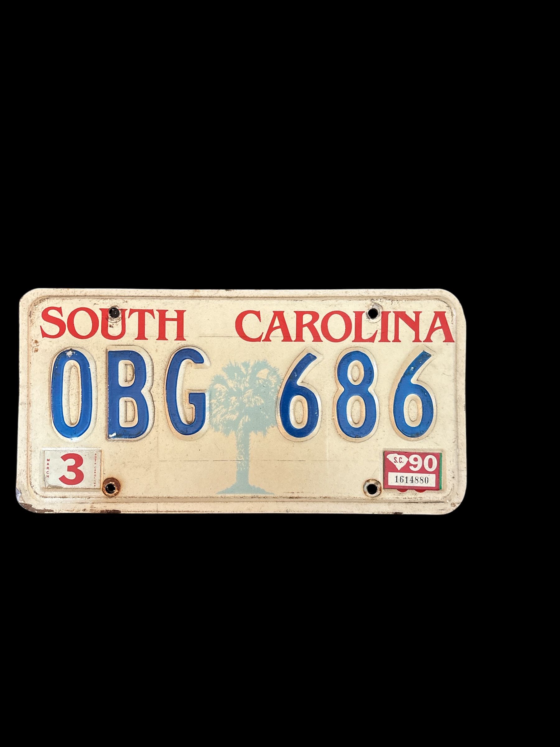 Plaque Voiture Immatriculation SOUTH CAROLINA OBG 686 de 1990