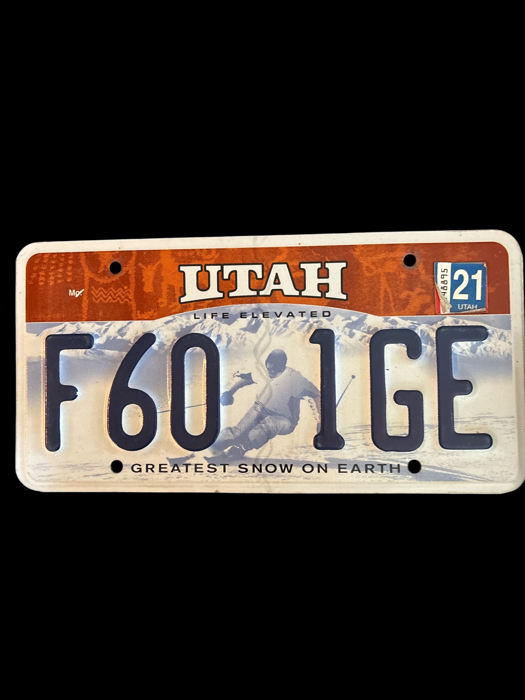 Plaque Voiture Immatriculation UTAH F60 1GE 2021
